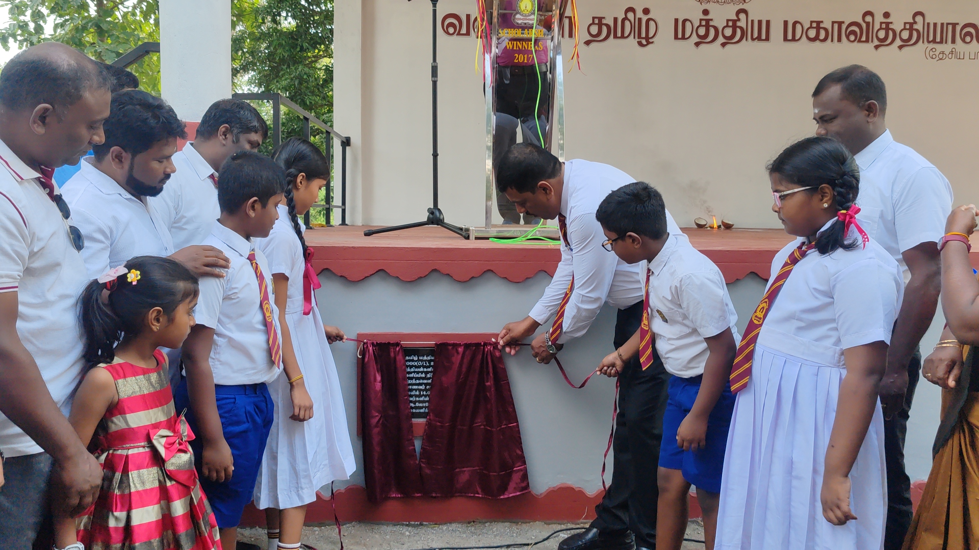 இதன்போது விருந்தினர்களிற்கு மாலை அணிவித்து, பேன்ட் வாக்கியம் முழங்க அழைத்து வரப்பட்டிருந்ததுடன், நாடா வெட்டி குறித்த மேடை திறந்து வைக்கப்படடிருந்தது.