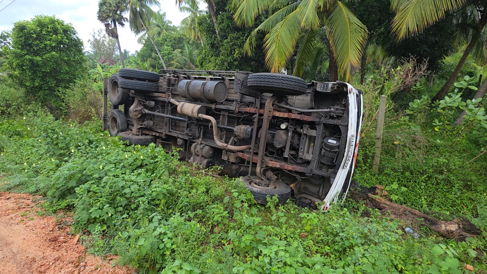 உமி மூட்டைகளுடன் தடம்புரண்ட லொறி; சாரதியின் தூக்கக் கலக்கத்தில் திருமலையில் விபத்து மூதூர் பொலிஸ் பிரிவிலுள்ள முன்னம்போடிவெட்டை பகுதியில் இன்று காலை பயணித்த லொறியொன்று வீதியை விட்டு விலகி தடம்புரண்டு விபத்துக்குள்ளாகியுள்ளது.திருகோணமலை - மட்டக்களப்பு பிரதான வீதியில் இன்று அதிகாலை இவ்விபத்துச் சம்பவம் இடம்பெற்றுள்ளது.இவ்விபத்தில் வாகனச் சாரதி மாத்திரமே பயணித்துள்ளதுடன், அவர் தெய்வாதீனமாக காயங்களின்றி உயிர் தப்பியுள்ளார்.கல்முனையிலிருந்து திருகோணமலைக்கு உமி ஏற்றிக்கொண்டு பயணித்த லொறியே இந்த அனர்த்தத்தை எதிர்நோக்கியுள்ளது.சாரதியின் தூக்க கலக்கமே விபத்துக்கான காரணமென தெரியவருகிறது. விபத்து தொடர்பான மேலதிக விசாரணைகளில் மூதூர் பொலிஸார் முன்னெடுத்துள்ளனர்.
