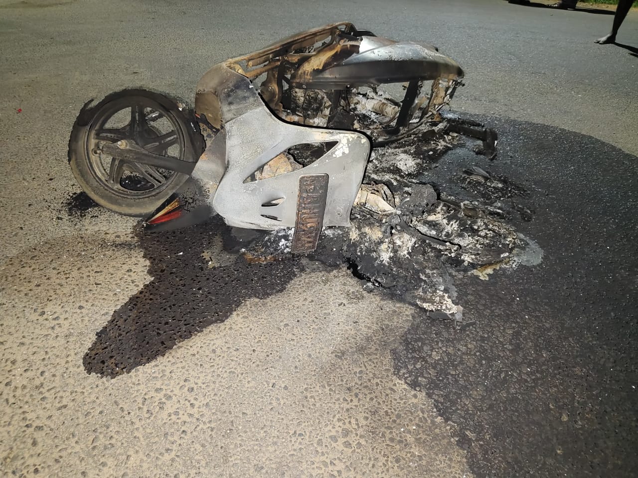 அதே இடத்தில் நிறுத்தப்பட்டிருந்த மோட்டார் சைக்கிளையும் வீட்டிலிருந்து எடுத்துச் சென்று சுமார் ஒரு கிலோமீட்டர் தொலைவில் உள்ள மல்லாகம் வீதி, மாசியப்பிட்டி சந்தியின் நடுவில் தீ வைத்துள்ளனர்.