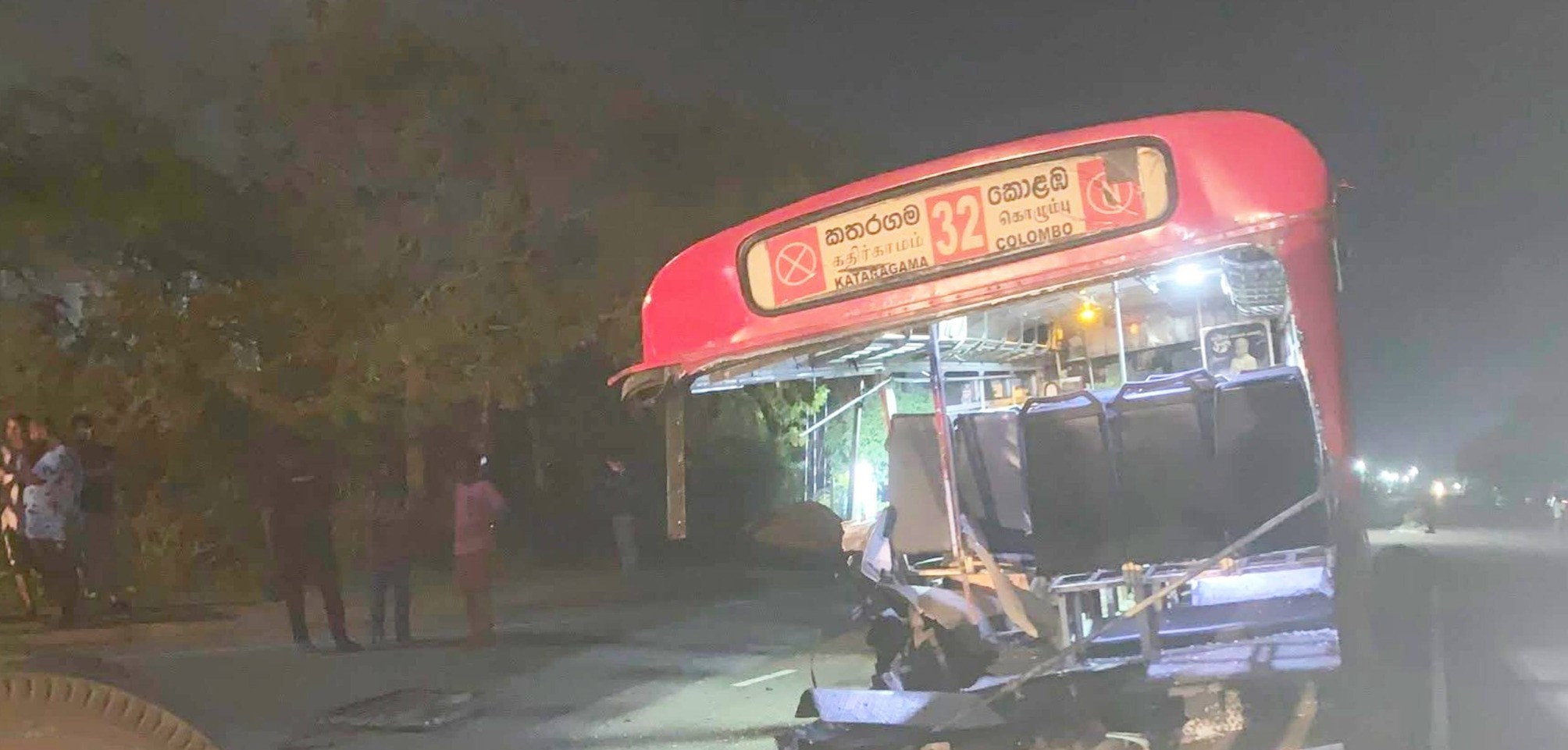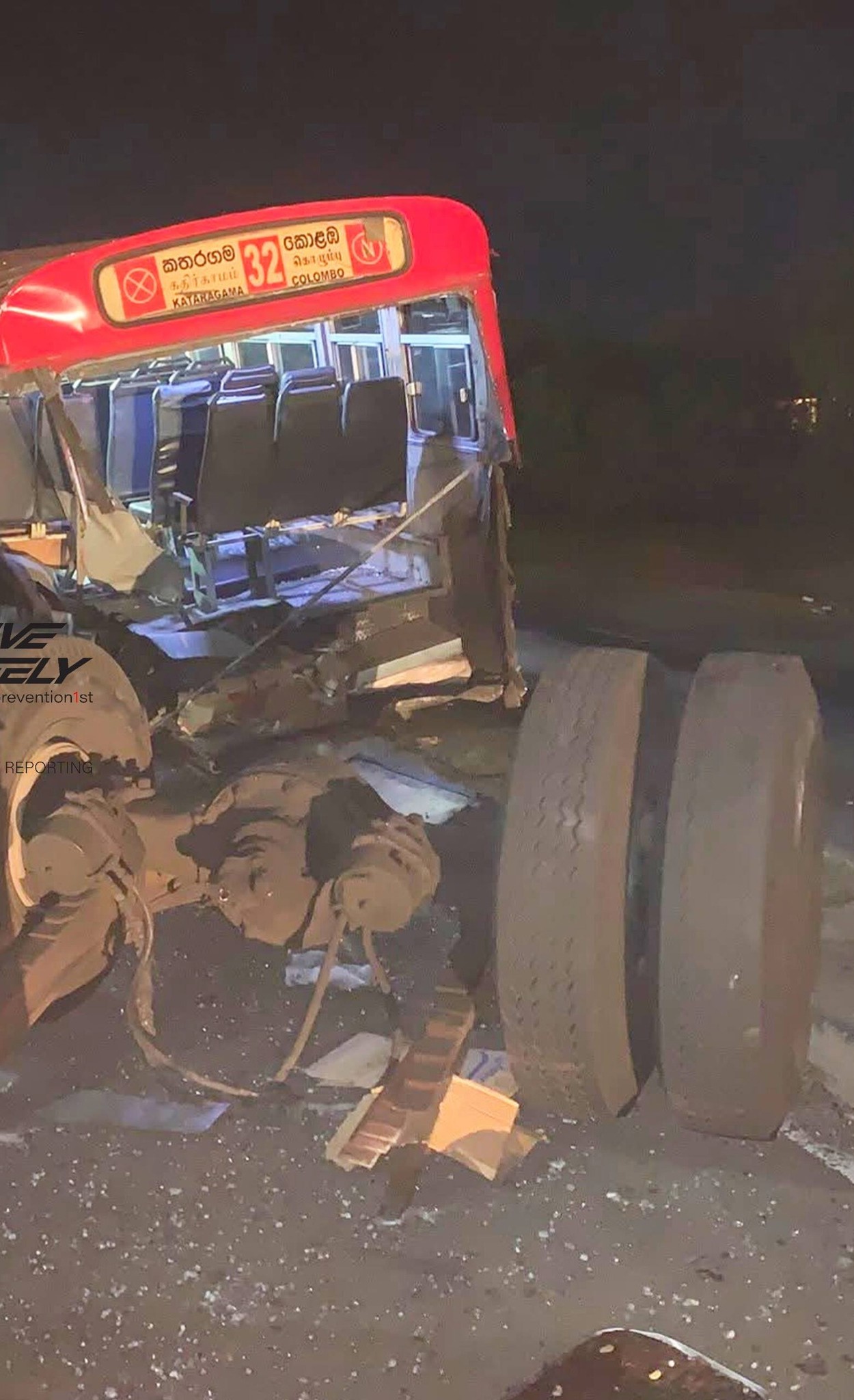 இவ் விபத்தில் பேருந்து முற்றாக சேதமடைந்துள்ளது.