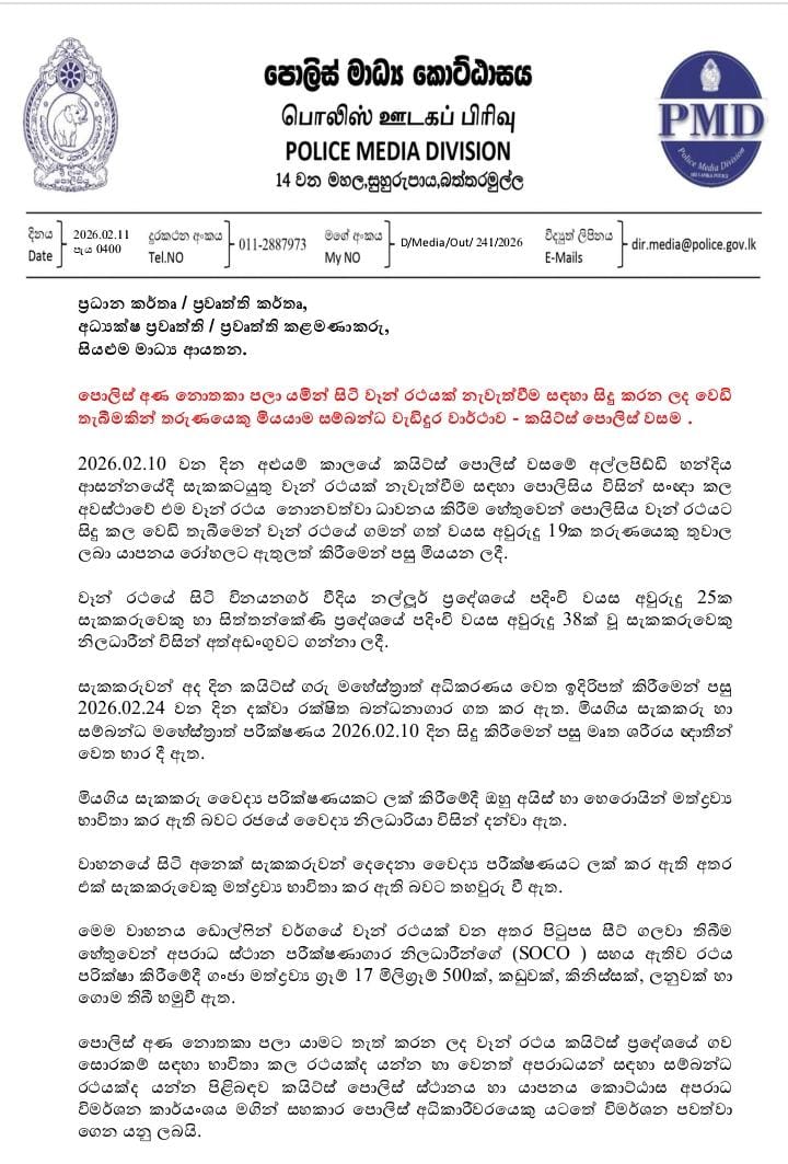 இந்நிலையில் இன்றையதினம் பொலிஸ் ஊடகப் பிரிவானது ஒரு அறிக்கையை வெளியிட்டுள்ளது. அந்த அறிக்கையில் கூறப்பட்டுள்ள முக்கியமா விடயங்கள்,