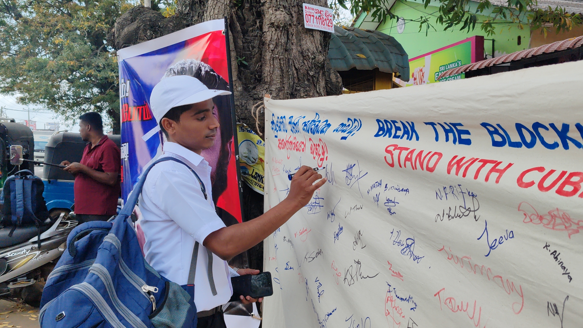 அமெரிக்காவினால் கியூபா மீது போடப்பட்ட மிகப்பெரிய பொருளாதார தடையை நீக்கக்கோரி இலங்கை பூராவும் கையெழுத்து போராட்டம் முன்னெடுக்கப்பட்டு வருகின்றது.