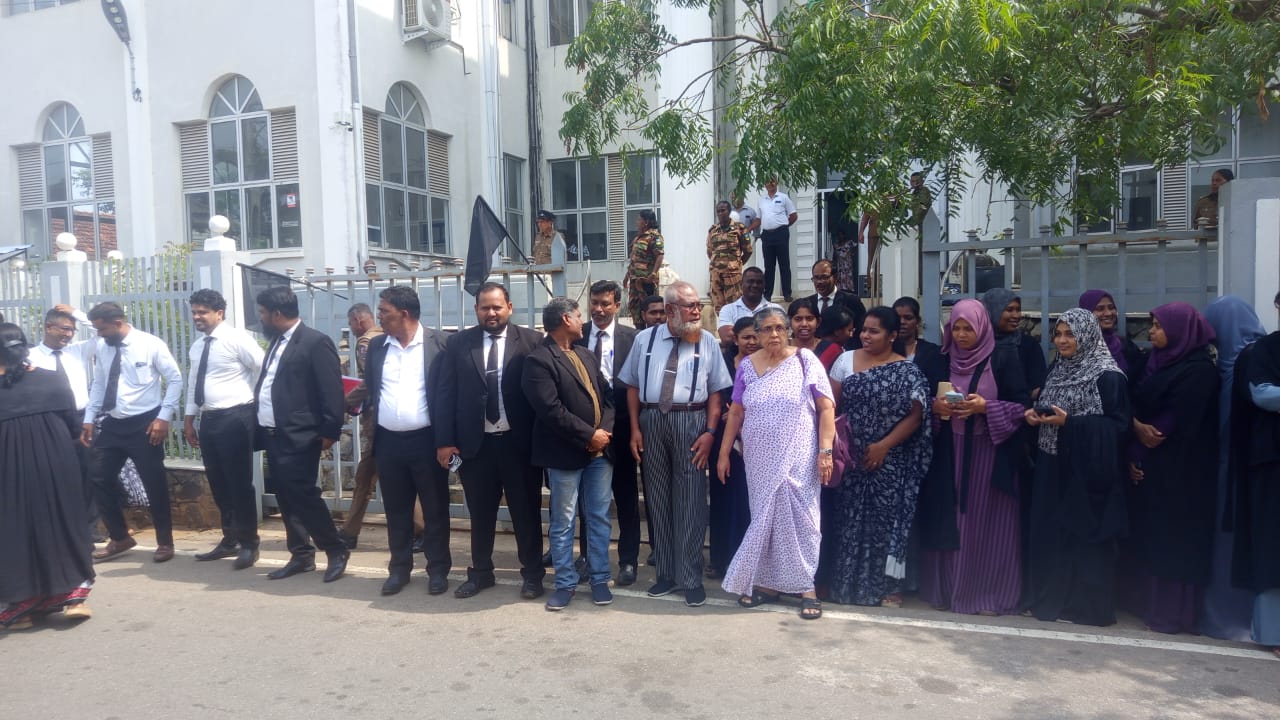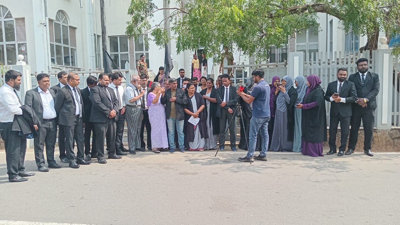 திருகோணமலை சட்டத்தரணிகள் சங்கத்தின் தலைவர் புண்ணியவதி துஷ்யந்தன் தலைமையில் இன்று காலை ஒன்றுகூடிய சட்டத்தரணிகள், கறுப்புப் பட்டி அணிந்து தமது கண்டனங்களை வெளிப்படுத்தினர்.