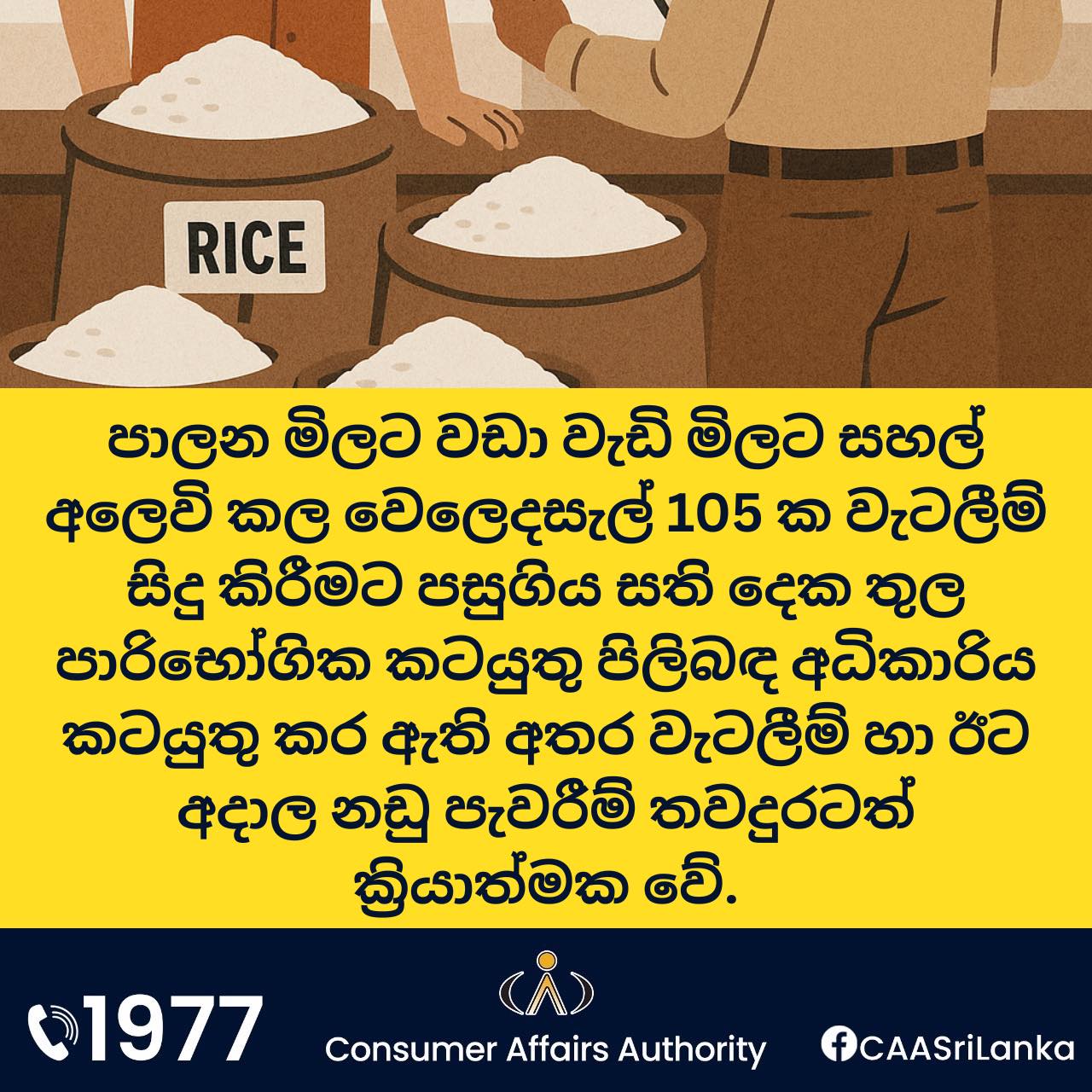 தனியான வர்த்தகர் அதிக விலைக்கு அரிசி விற்று, அவர் குற்றவாளி என நிரூபிக்கப்பட்டால், அவருக்கு 100,000 ரூபாய் முதல் 500,000 ரூபாய் வரை அபராதம் அல்லது 5 மாதங்கள் சிறைத்தண்டனை அல்லது இரண்டும் விதிக்கப்படலாம் என்று அதிகாரசபை தெரிவித்துள்ளது.