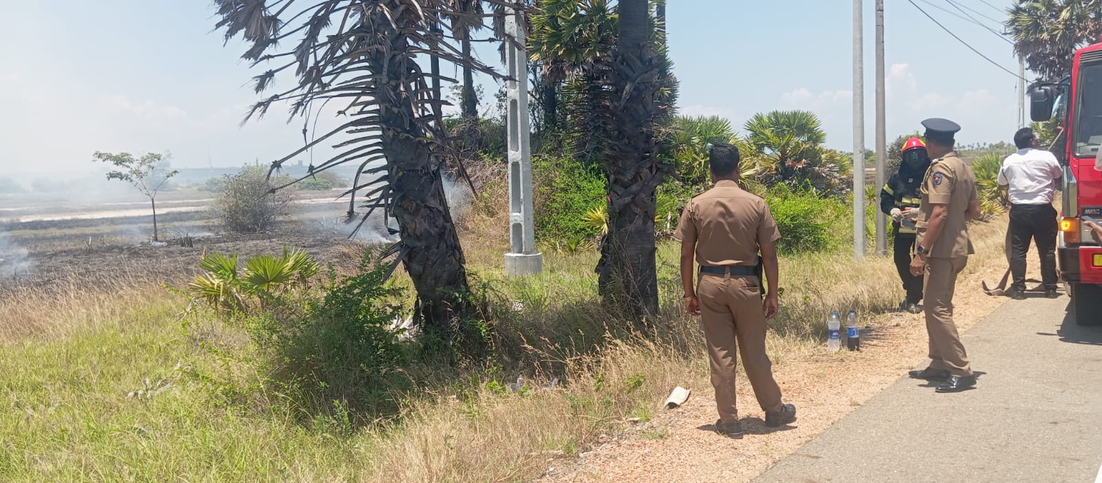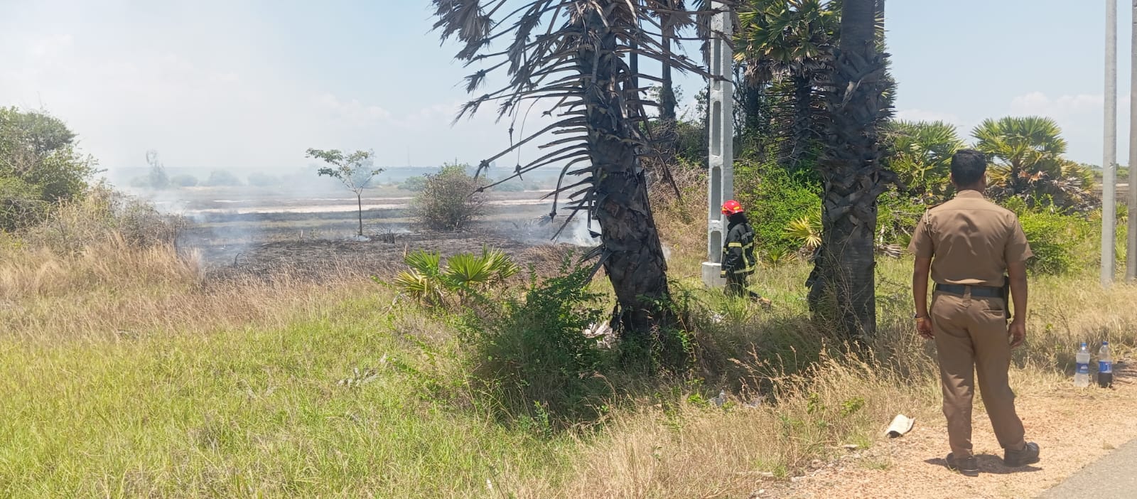 யாழ்ப்பாணம் - அல்லைப்பிட்டி, மண்கும்பான் இடையே நண்டு தொழிற்சாலையின் முன்பகுதியிலுள்ள தரிசுக் காணிகளில் காணப்பட்ட புதர்களுக்கு விசமிகள் தீ மூட்டியதில் பாரியளவிலான புற்றரைகள் எரிந்து நாசமாகியுள்ளன.