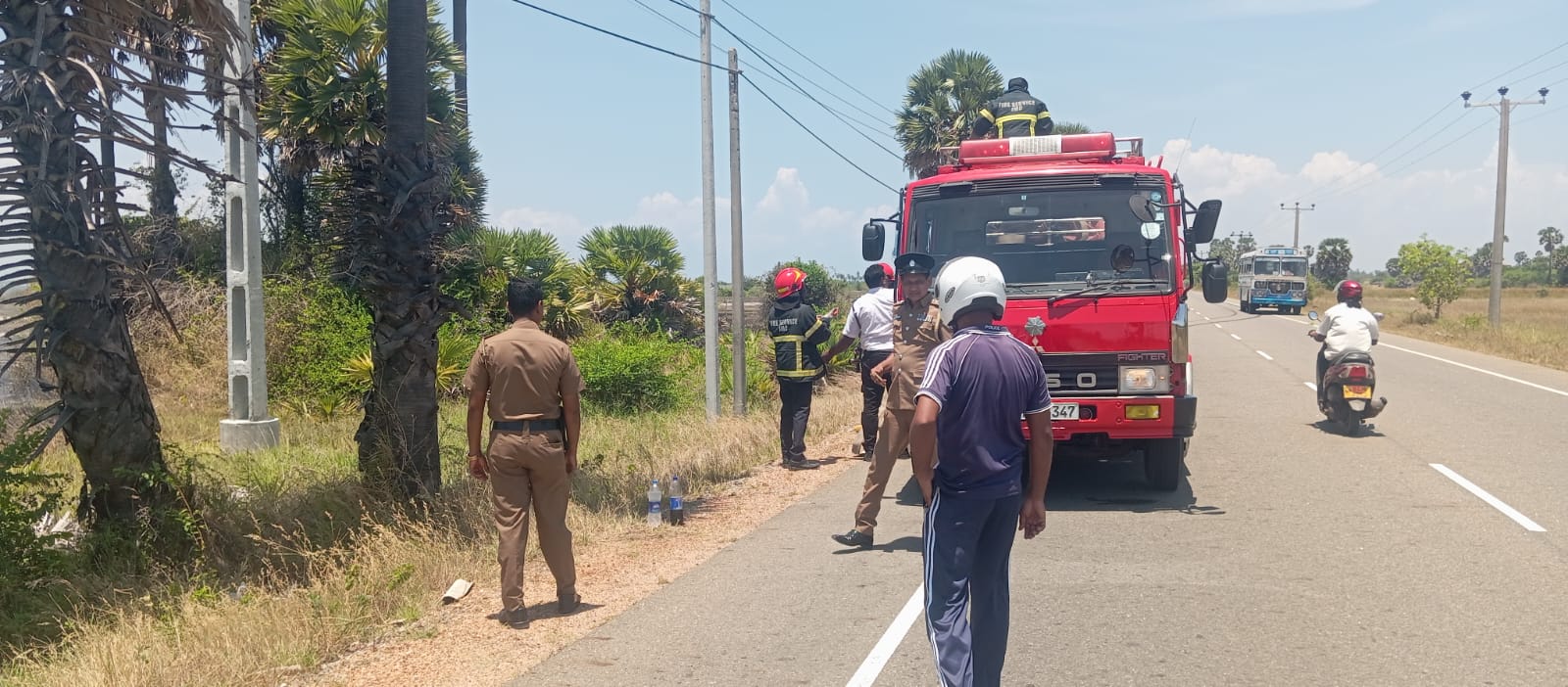 ஊர்காவற்றுறை - யாழ்ப்பாணம் வீதியின் பிரதான போக்குவரத்து, வீதியில் இந்த நாசகார வேலையை விசமிகள் மேற்கொண்டதை, சமூக நலன் விரும்பிகள் பொலிசாருக்கு தெரியப்படுத்தியதை அடுத்து யாழ். மாநகர சபையின் தீயணைப்பு வாகனம் வரவழைக்கப்பட்டு தீயை கட்டுப்படுத்த துரித நடவடிக்கை எடுக்கப்பட்டது.