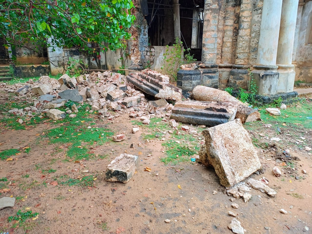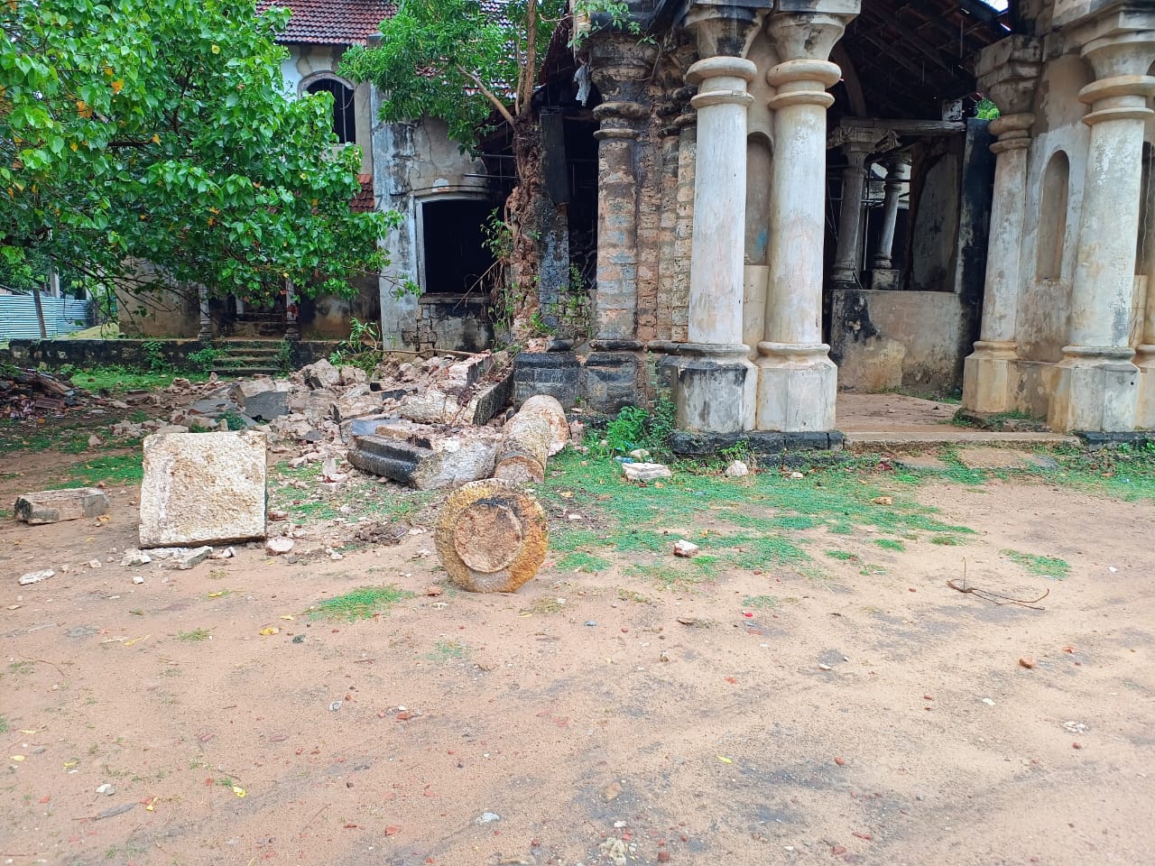 யாழ்ப்பாணத்தில் இன்றைய தினம் பெய்த மழை காரணமாக தொல்பொருள் சின்னமான மந்திரிமனையின் ஒரு பக்கம் இடிந்து விழுந்துள்ளது.
