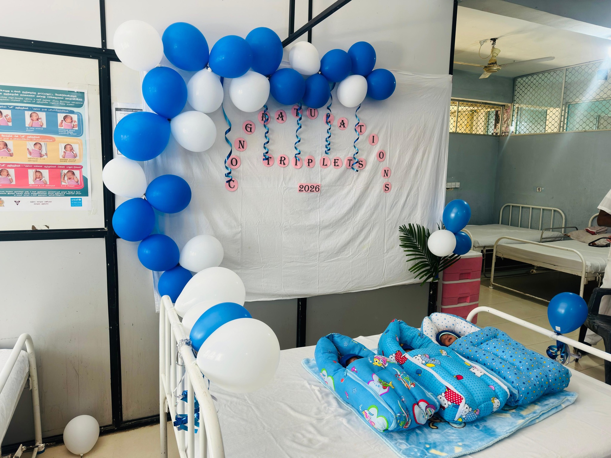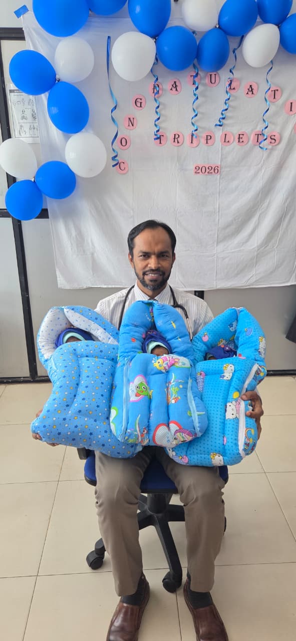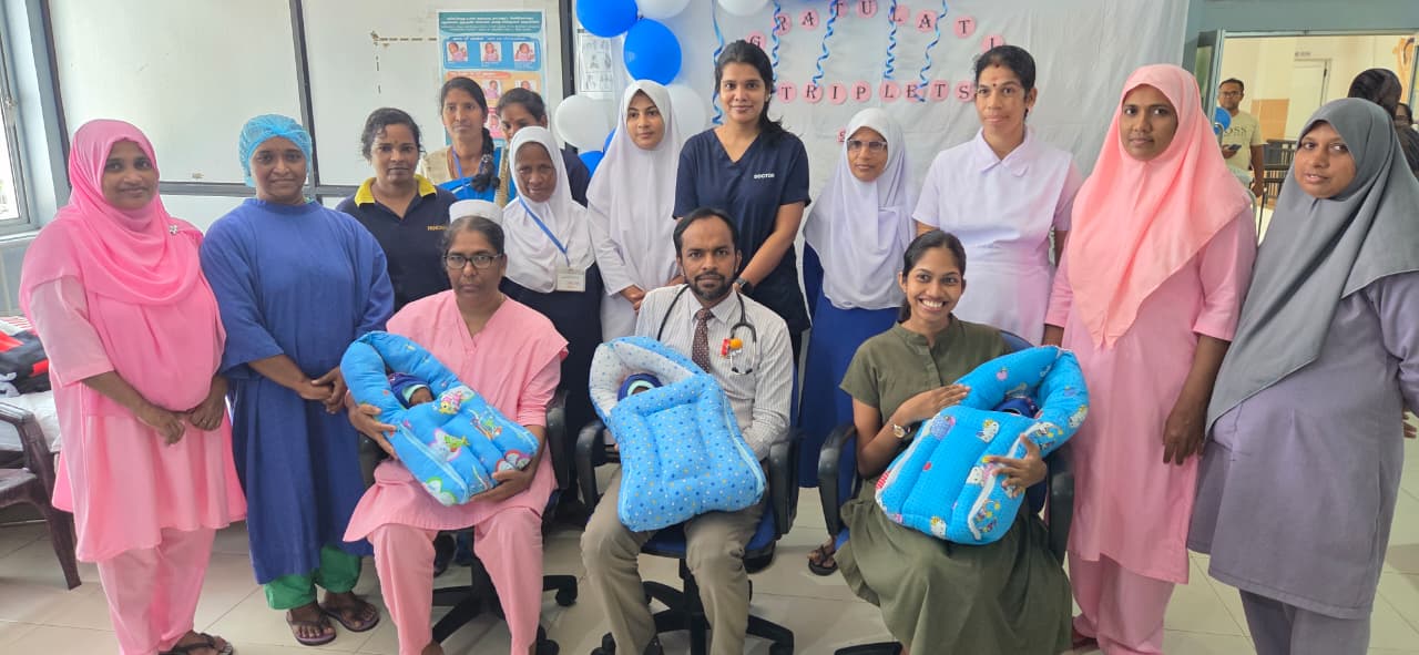 ஒரே பிரசவத்தில் பிறந்த மூன்று ஆண் குழந்தைகள் கல்முனை அஷ்ரஃப் ஞாபகார்த்த வைத்தியசாலையில் 34 வாரங்கள் பூர்த்தியடையாத நிலையில் ஒரே பிரசவத்தில் மூன்று குழந்தைகள் பிறந்துள்ளது.சம்மாந்துறை செந்நெல் கிராமத்தைச் சேர்ந்த இன்சாத் பானு கல்முனை அஷ்ரஃப் ஞாபகார்த்த வைத்தியசாலையில் ஒரே தடவையில் 34 வாரங்கள் பூர்த்தியடையாத நிலையில் மூன்று ஆண் குழந்தைகளைப் பெற்றெடுத்துள்ளார்.இந்த அரிய மற்றும் சிறப்பான பிரசவம், மகப்பேற்று விசேட வைத்திய நிபுணர் எச். எம். றஸீன் முகம்மட் மற்றும் சிறுபிள்ளை வைத்திய நிபுணர் பீ. எம். அர்சாத் அகமட் ஆகியோரின் தலைமையிலான மருத்துவக் குழுவினரால் வெற்றிகரமாக மேற்கொள்ளப்பட்டது.பிறந்த மூன்று ஆண் குழந்தைகளும் நலமாக உள்ளதுடன், தாயாரும் நல்ல உடல்நிலையுடன் இருப்பதாக வைத்தியசாலை நிர்வாகம் தெரிவித்துள்ளது.குழந்தைகளின் சுகநலத்தை வேண்டி வைத்தியசாலையில் விசேட துஆப் பிரார்த்தனை நிகழ்வு இடம்பெற்றது.இதில் வைத்தியர்கள், தாதிய மேற்பார்வையாளர், தாதியர்கள், மருத்துவ தாது மற்றும் சுகாதார சேவை உதவியாளர்கள் உள்ளிட்ட பலரும் கலந்து கொண்டனர்.நிகழ்வின் நிறைவில், சிறுபிள்ளை வைத்திய நிபுணர் பீ. எம். அர்சாத் அகமட் தலைமையிலான குழுவினர் குழந்தைகளுக்கு பரிசுகள் வழங்கி கௌரவித்தனர்.