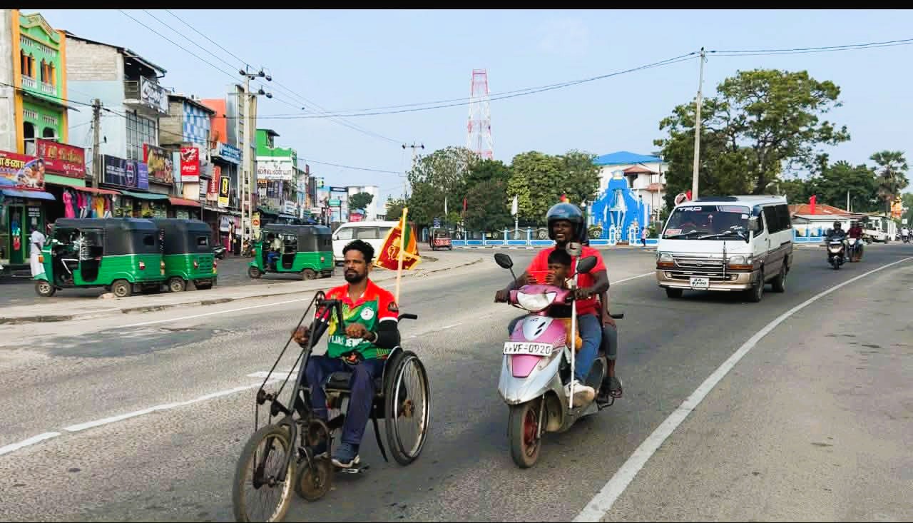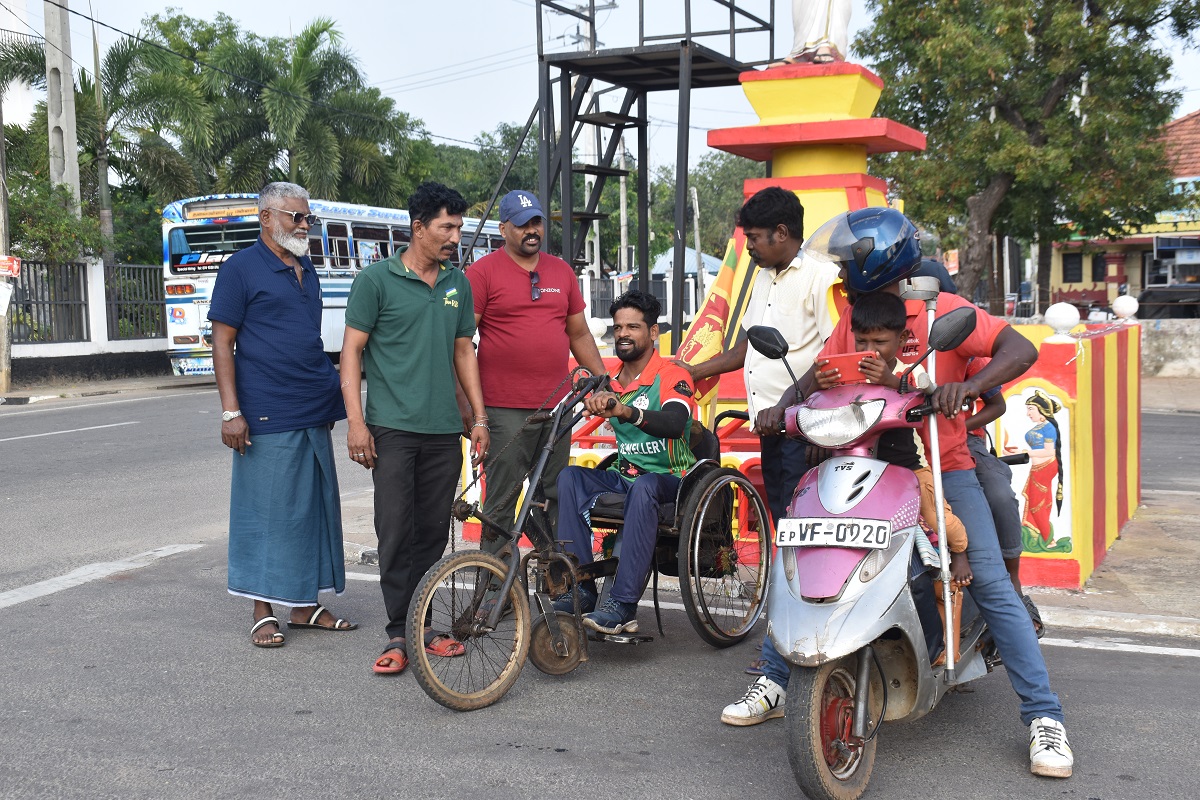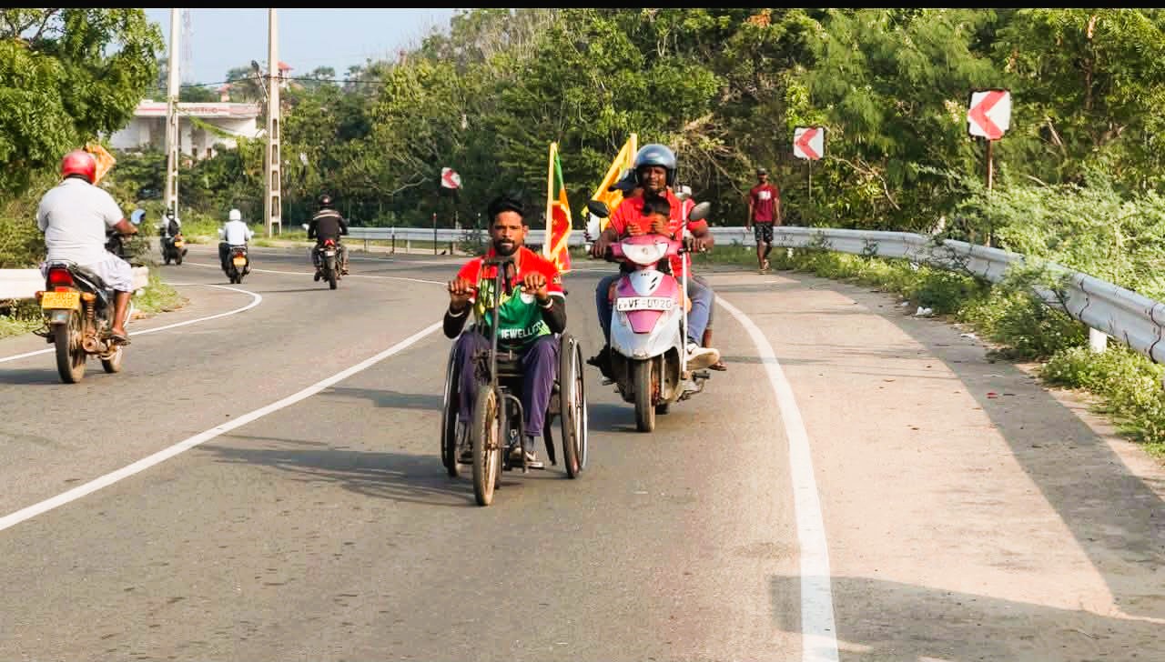 சக்கர நாற்காலியில் இலங்கை முழுவதும் சுற்றுப்பயணம்; மன்னாரில் இருந்து ஆரம்பமான இளைஞனின் பயணம் மன்னாரில் இருந்து சக்கர நாற்காலியின் உதவியுடன் மாற்றாற்றல் கொண்ட இளைஞரான வவுனியா சூடுவந்த குளம் பகுதியை சேர்ந்த மக்கின் முகமது அலி என்பவர் இன்று செவ்வாய்க்கிழமை (20) காலை 8.45 மணி அளவில் தனது சுற்றுப் பயணத்தை ஆரம்பித்துள்ளார்.நேற்றைய தினம் திங்கட்கிழமை (19) மன்னார் வந்த குறித்த இளைஞன் தனது பயணம் தொடர்பான விளக்கத்தை மாவட்ட அரச அதிபர் க.கனகேஸ்வரனை சந்தித்து தெரியப்படுத்திக் கொண்டார்.இந்த நிலையில் இன்று செவ்வாய்க்கிழமை (20) காலை 8.45 மணி அளவில் மன்னார் பஜார் பகுதியில் உள்ள தந்தை செல்வாவின் சிலைக்கு முன்பாக இருந்து தனது பயணத்தை ஆரம்பித்துள்ளார். இலங்கை நாட்டின் 79 ஆவது சுதந்திர தினத்தை யொட்டியும் சில கோரிக்கைகளை முன் வைத்து மாற்றாற்றல் கொண்ட இளைஞரான மக்கின் முகமது அலி மன்னாரில் இருந்து சக்கர நாற்காலியூடான இலங்கை முழுவதும் சுற்றுப்பயணம் ஒன்றை ஆரம்பித்துள்ளார்.வடமாகாண சக்கர நாற்காலி கிரிக்கெட் அணியின் தலைவரான மக்கின் முகமது அலி தொடர்ச்சியாக கடந்த காலங்களில் பல்வேறு செயல்பாடுகளில் ஈடு பட்டுள்ளார்.இந்த நிலையில் இலங்கை நாட்டில் ஏற்பட்ட அனர்த்தத்தின் போது பாதிக்கப்பட்ட மக்களுக்காக பல்வேறு நாடுகள் மனிதாபினான உதவிகளை மேற்கொண்டுள்ளனர்.அவர்களுக்கும் நன்றிகளை தெரிவித்துக் கொள்ளும் வகையிலும் புலம் பெயர் உறவுகளும் உதவிகளை மேற்கொண்டுள்ளனர். அவர்களுக்கும் நன்றிகளை தெரிவித்துக் கொள்ளும் வகையிலும் குறித்த பயணம் முன்னெடுக்கப்பட்டுள்ளதாக அவர் தெரிவித்தார்.மேலும் இலங்கை மக்கள் அனைவரும் அனர்த்தத்தின் போது எவ்வித வேறுபாடுகள் இன்றி ஒருவருக்கு ஒருவர் உதவிகளை மேற்கொண்டுள்ளனர்.இந்த நிலையில் இலங்கை நாட்டு மக்களிடையே உள்ள ஒற்றுமையையும், சமூக நல்லெண்ணத்தையும் நோக்காக கொண்டு குறித்த பயணம் ஆரம்பிக்கப்பட்டுள்ளது என அவர் தெரிவித்தார்.மேலும் படித்த மாற்றுத்திறனாளிகள் வேலை வாய்ப்புகள் இன்றி முடங்கியுள்ளனர்.அவர்களுக்கான வேலை வாய்ப்புகளையும் அரசாங்கம் பெற்றுக் கொடுக்க வேண்டும். என்ற கோரிக்கைகளை முன் வைத்து குறித்த பயணம் ஆரம்பிக்கப்பட்டது.இலங்கை முழுவதும் சுமார் 1500 கிலோ மீற்றருக்கும் அதிகமான கடற்கரையோரமாக குறித்த பயணம் முன்னெடுக்கப்படுகின்றது.எனவே மக்கள் தமது ஆதரவை வழங்க வேண்டும் என்ற கோரிக்கையை முன் வைத்து இன்றைய தினம் செவ்வாய்க்கிழமை(20) காலை 8.45 மணி அளவில் தனது பயணத்தை ஆரம்பித்துள்ளார்.