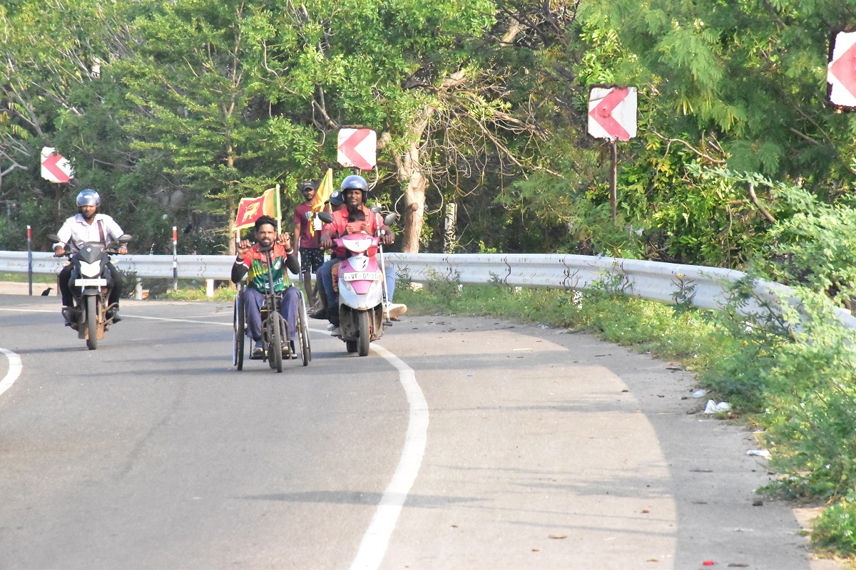 மேலும் படித்த மாற்றுத்திறனாளிகள் வேலை வாய்ப்புகள் இன்றி முடங்கியுள்ளனர்.அவர்களுக்கான வேலை வாய்ப்புகளையும் அரசாங்கம் பெற்றுக் கொடுக்க வேண்டும். என்ற கோரிக்கைகளை முன் வைத்து குறித்த பயணம் ஆரம்பிக்கப்பட்டது.