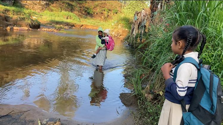 குறிப்பாக, சிறுவயது மாணவர்களை பெற்றோர் தோளில் தூக்கிச் சுமந்து, ஆற்றின் நடுவே கடந்து பாடசாலைக்கு அனுப்பி வைக்கும் அவல நிலை தொடர்கிறது.