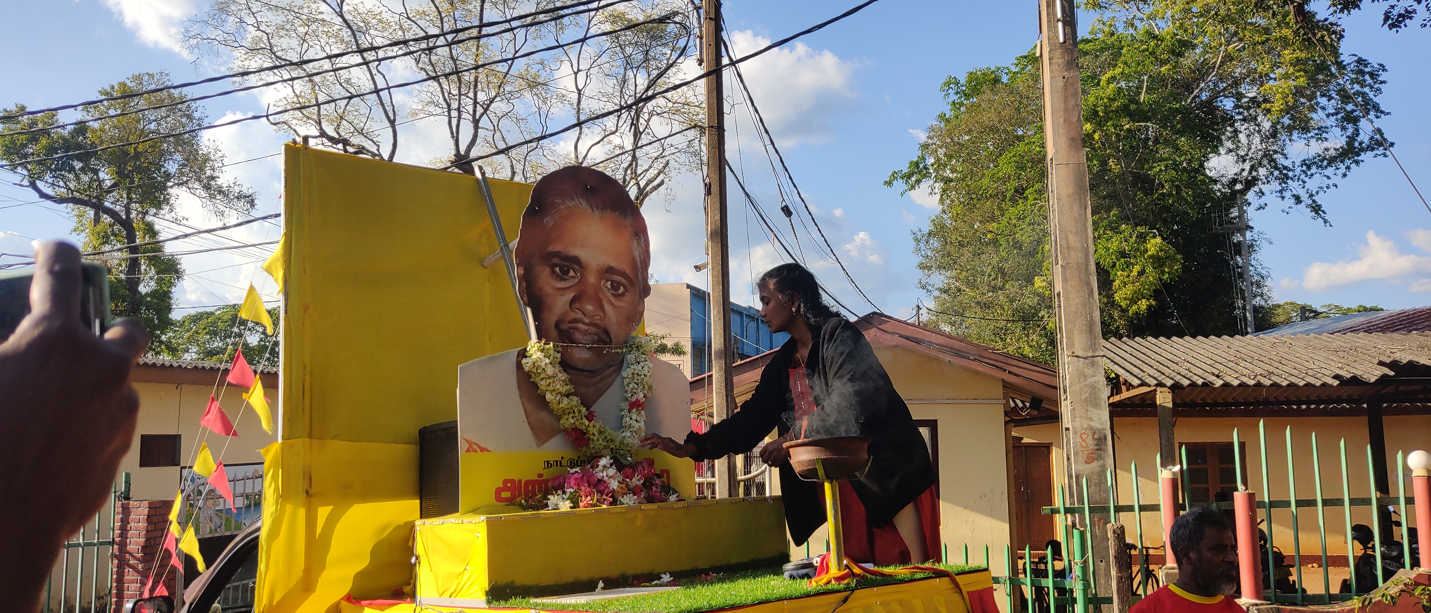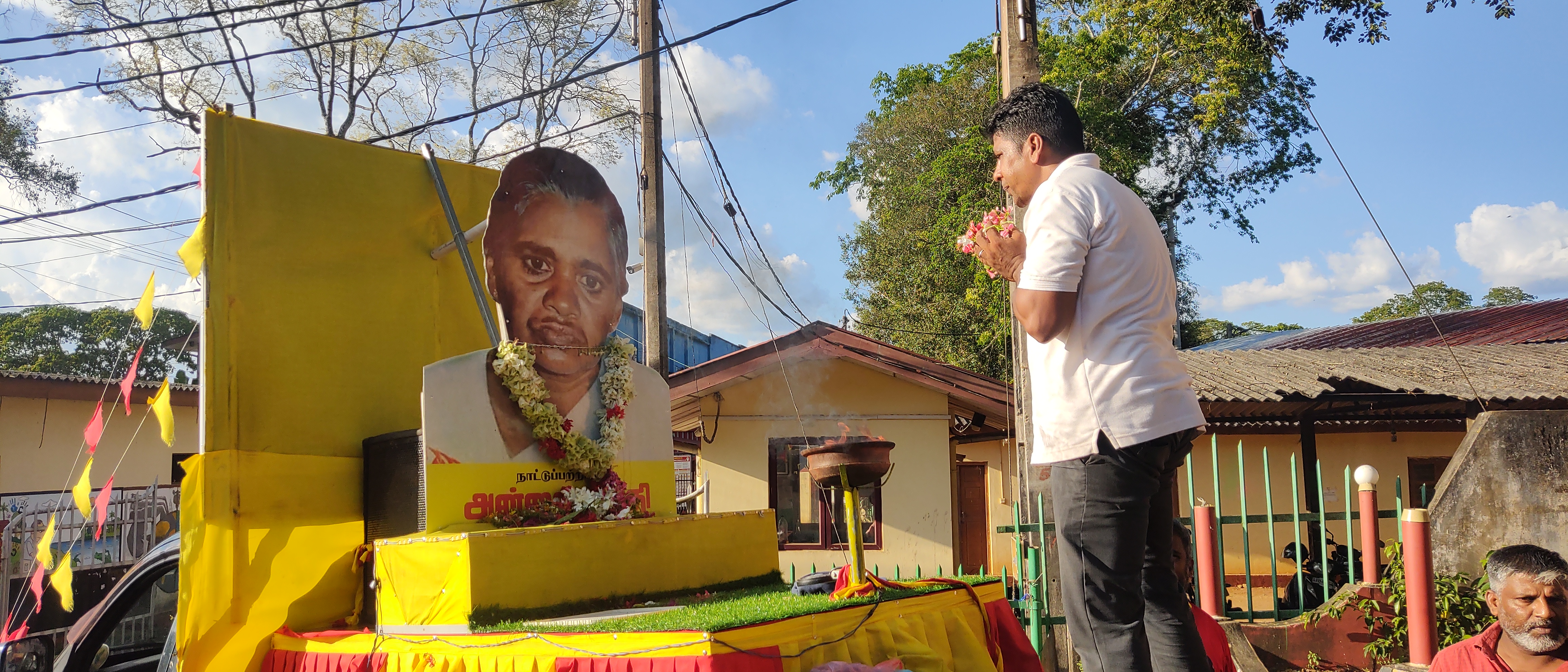அன்னை பூபதியின் திருவுருவப் படம் தாங்கிய ஊர்திக்கு வவுனியா மக்கள் அஞ்சலி அன்னை பூபதியின் 38ஆவது நினைவு தினத்தை முன்னிட்டு, அவரது திருவுருவப் படத்தினை தாங்கிய ஊர்தி இன்று மாலை வவுனியாவை வந்தடைந்திருந்தது.வவுனியா மாநகரசபை முன்றலில் அமைந்துள்ள பொங்கு தமிழ் தூபி முன்பாக பிரதான அஞ்சலி நிகழ்வு தீபம் ஏற்றி மலர் தூபி இடம்பெற்றது.தொடர்ந்தும் வவுனியாவில் பல்வேறு பகுதிகளுக்கும் சென்ற குறித்த அன்னை பூபதியின் திருவுருவ படம் தாங்கிய ஊர்திக்கு மக்கள் திரண்டு வந்து மலர் தூவி அஞ்சலி செலுத்தியிருந்தார்கள்.தமிழ் தேசிய மக்கள் முன்னணியின் ஏற்பாட்டில் கடந்த ஒன்பதாம் திகதி யாழ்ப்பாணம் நல்லூர் தியாக தீபம் திலீபனின் நினைவாலயத்தில் இருந்து ஆரம்பமான ஊர்திப் பவனியானது வடக்கு, கிழக்குப் பிரதேசங்கள் முழுவதும் ஊர்வலமாக சென்று, இறுதி நாளில் மட்டக்களப்பில் உள்ள தியாக தீபம் அன்னை பூபதியின் சமாதி அமைந்துள்ள பகுதியை சென்றடையவுள்ளது.எதிர்வரும் 19 ஆம் திகதி வடக்கு, கிழக்கில் பிரதான நினைவேந்தல் நிகழ்வுகள் இடம்பெறவுள்ளமை குறிப்பிடத்தக்கது.