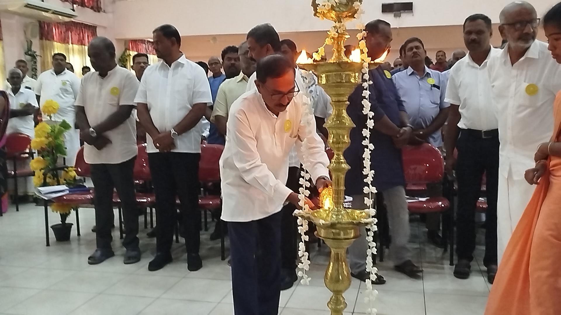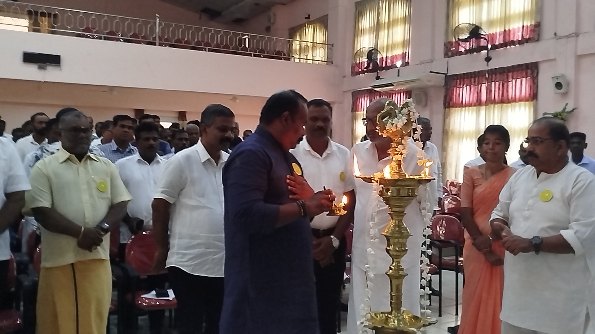 ஜனநாயக தமிழ் தேசிய கூட்டணியின் பேராளர் மாநாடு ஆரம்பமானது  சாவகச்சேரியின் நகரசபையின் பொண் விழா மண்டபத்தில் ஜனநாயக தமிழ் தேசிய கூட்டணியின் முதலாவது பேராளர் மாநாடு இன்றைய தினம் காலை 10 மணியளவில் ஆரம்பமானது இவ் மாநாட்டின் ஆரம்பத்தில் ஜனநாயக தமிழ் தேசிய கூட்டணியின் இணைத்தலைவர்களால் மக்கள விளக்கு ஏற்றி ஆரம்பிக்கப்பட்டது.அதனை தொடர்ந்து தமிழ் தாய் பாட்டு பாடப்பட்டதுடன் இவ் மாநாட்டில் கட்சியின் எதிர்கால செயற்பாடுகள் தொடர்பாக கலந்துரையாடப்படவுள்ளது இவ் பேராளர் மாநாட்டில் ஜனநாயக தமிழ் தேசிய கூட்டணியின் இனைத்தலைவர்கள், கட்சியின் மாவட்ட இணைப்பாளர்கள் மற்றும் ஜனநாயக தமிழ் தேசிய கூட்டணியின் உள்ளூராட்சி சபை உறுப்பினர்கள் கட்சியின் முக்கியஸ்தர்கள் என பலரும் கலந்து கொண்டனர்